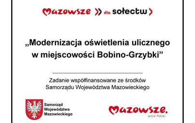 Informujemy o zrealizowaniu przez Gminę Płoniawy-Bramura zadania pn. „Wyposażenie świetlicy wiejskiej w miejscowości Bobino Wielkie”, które miało na celu utworzenie zaplecza kuchennego w tejże świetlicy. Zadanie współfinansowano ze środków Samorządu Województwa Mazowieckiego w ramach „Mazowsze dla sołectw 2022”. Mamy nadzieję, że realizacja zadania przyczyni się do poprawy warunków korzystania ze świetlicy wiejskiej oraz zwiększy możliwości jej wykorzystania, a ponadto wpłynie na integrację społeczności Sołectwa Bobino Wielkie.